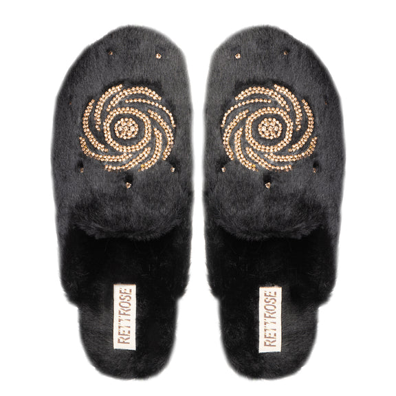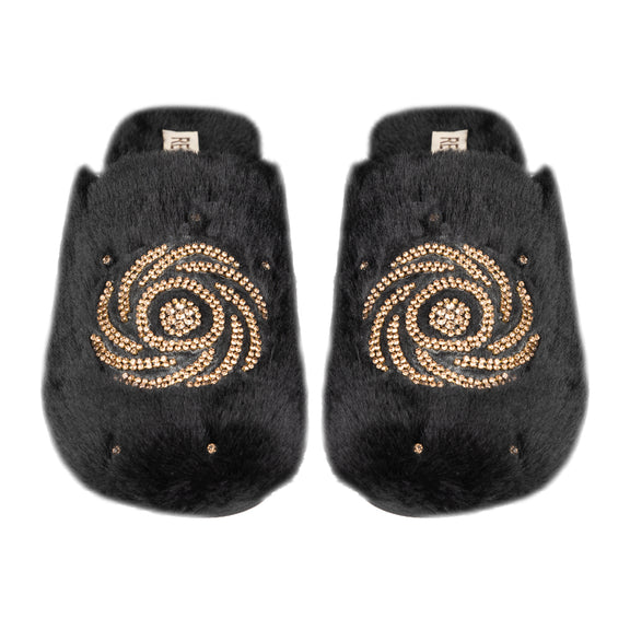Morgan Black Luxury Faux Fur Comfortable Diamanté Embellished Women’s Handmade Slippers