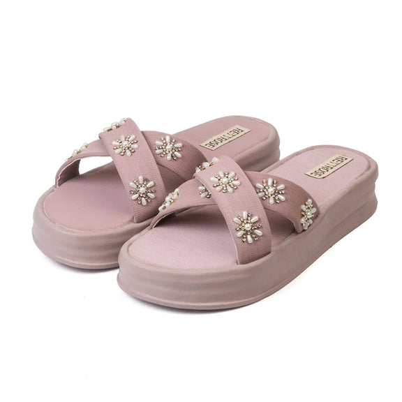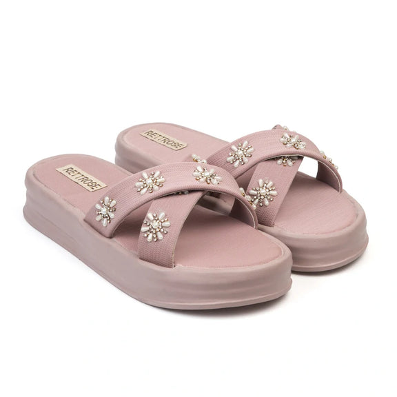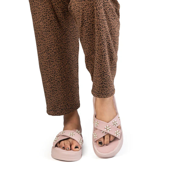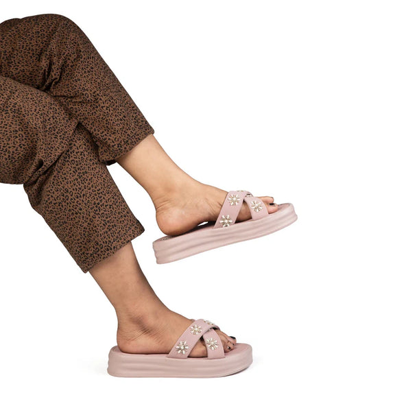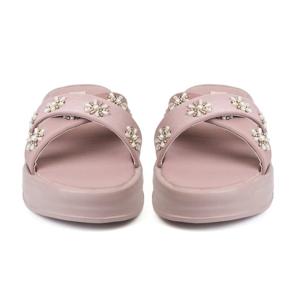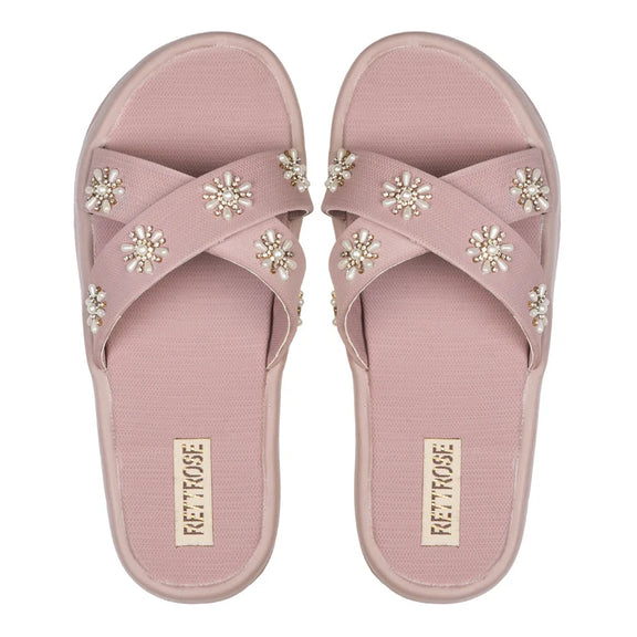 The Safira Pink Luxury Cross Over Embellished Slides